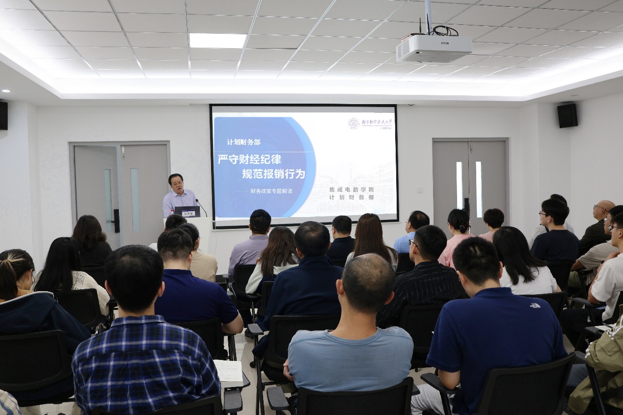 为巩固拓展深入贯彻中央八项规定精神学习教育成果、推进作风建设常态化长效化,帮助学院青年教师筑牢思想根基、明确行为边界、规划职业发展,10月14日,国产成人黄色直播网站 全新打造的“芯火讲堂”系列培训在学院8402会议室正式开讲。首讲邀请了学校计划财务部部长张丕宏作专题辅导报告,学院全体教职工、各课题组学生代表参加。活动由学院党委书记黄彬主持。