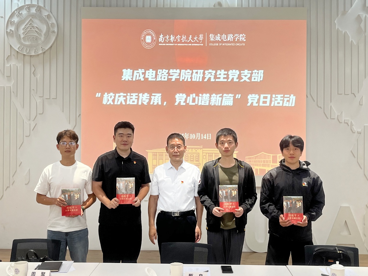 甄良带领大家回顾了南航建校70余年来的发展历程、办学特色以及形成的精神文化。他指出,南航因国防而生、伴国防而长,始终坚持“为党育英才、为国铸重器”的初心使命,勇担强国建设的时代重任。希望大家始终牢记共产党员的身份,时刻以共产党员的标准严格要求自己,传承好、弘扬好、践行好南航精神文化,在今后的生活、学习、科研、工作中充分发挥先锋模范作用,为新型工业化和国防现代化作出新的更大贡献。